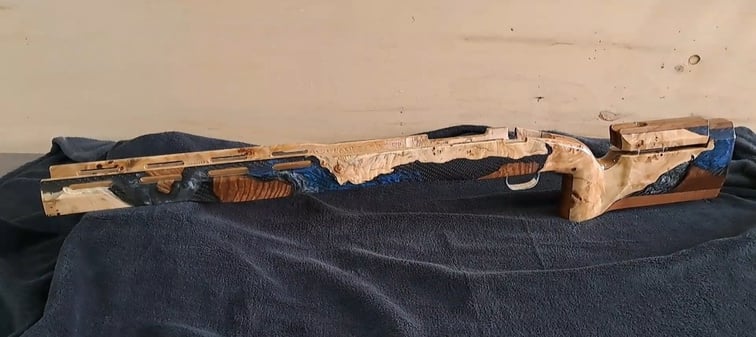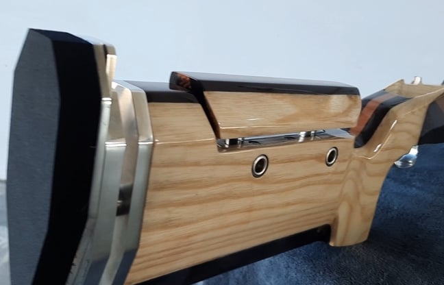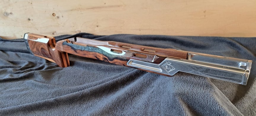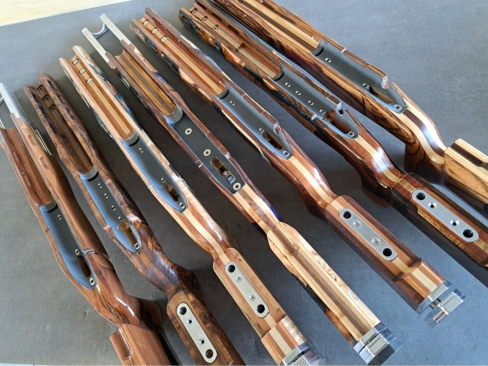 Our stocks are not mass produced but are designed together with the customer to make each of them a unique piece using laminated exotic hardwoods alternating with layers of carbon fiber and epoxy.
